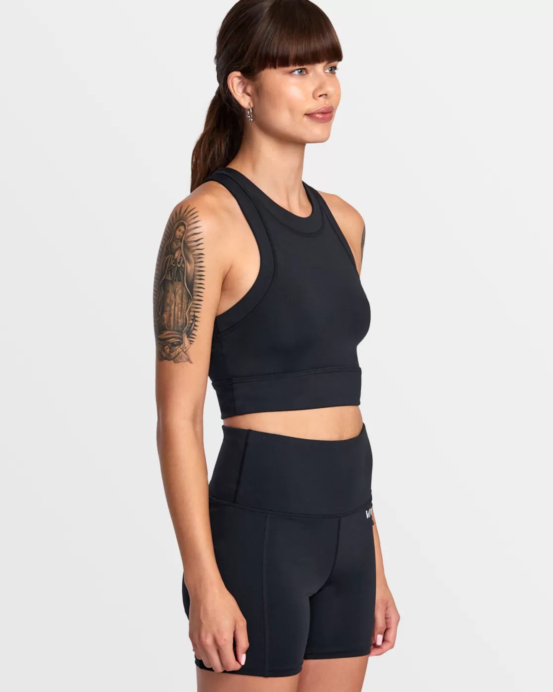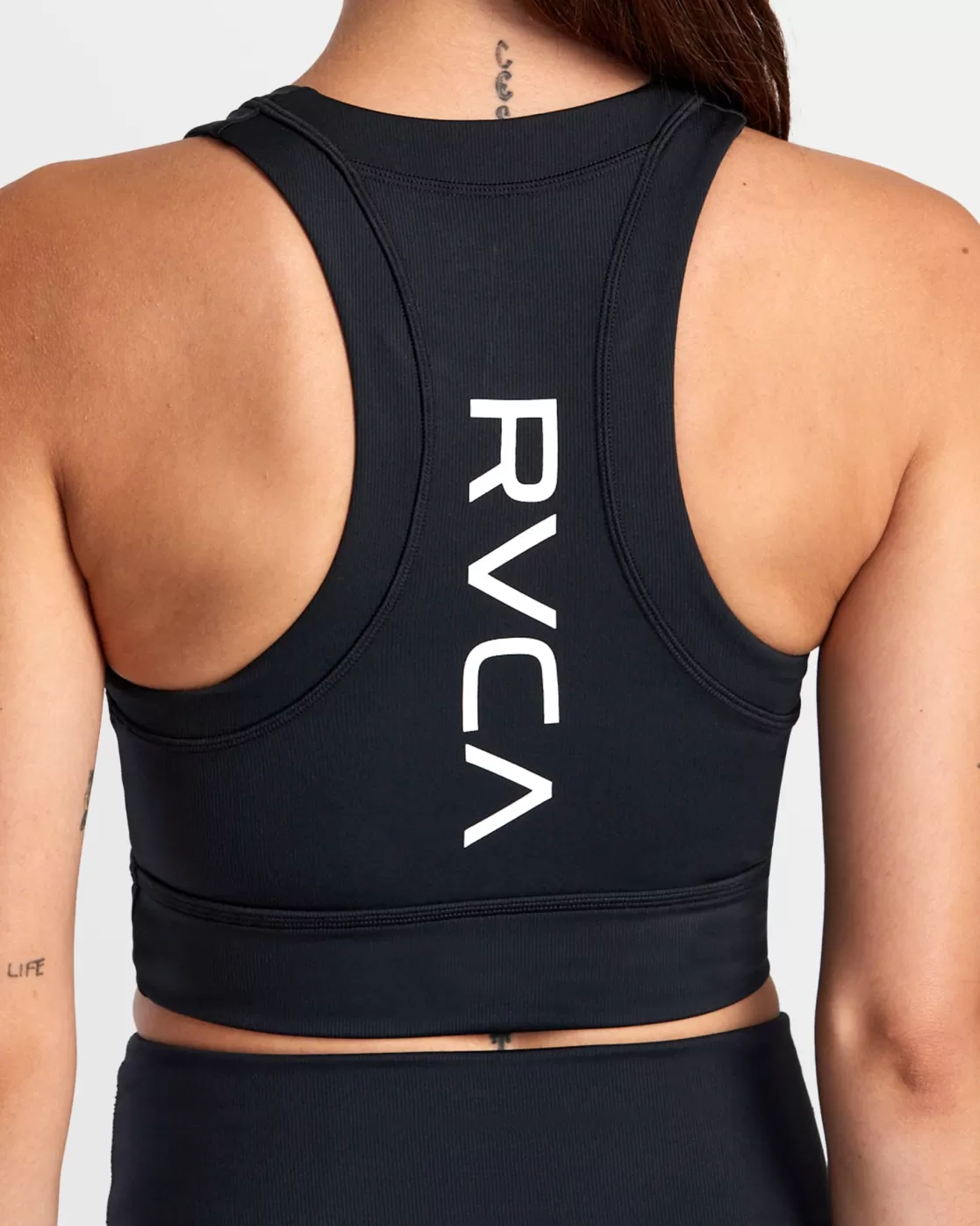 Push your performance with RVCA Women’s Ribbed Fitted Tank Top. Featuring a high neck and figure-hugging fit, this athletic racerback crop top is crafted of soft and stretchy ribbed knit fabric with logo branding at the left chest and down the back. Featured here in the Black colorway.